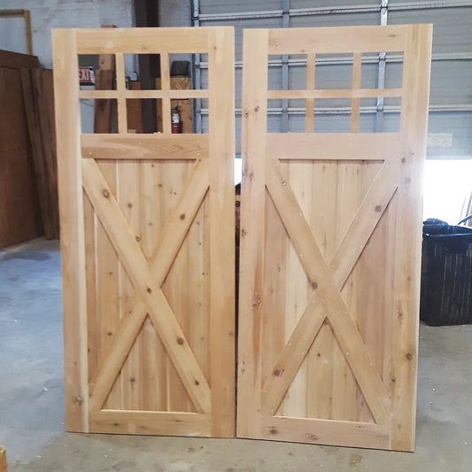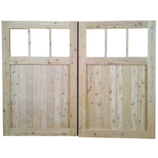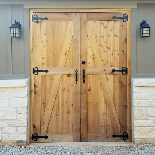 In addition to the standard garage, the Carriage House or Swing Out Barn style is an upgraded look for any guest house, home gym or other living space. Our hand-built all wood doors are often paired with a custom jamb kit, complete with heavy duty hinges, threshold, t-astragal and weather stripping. Select your favorite design to begin customizing your new doors.