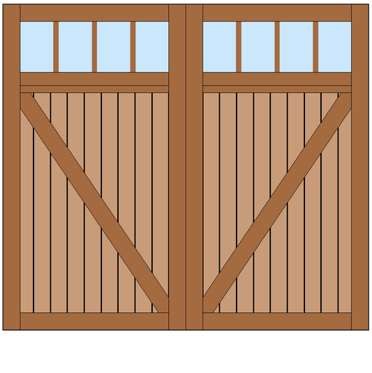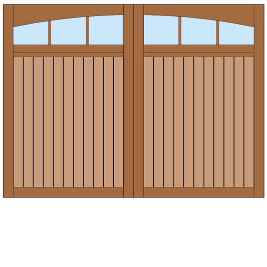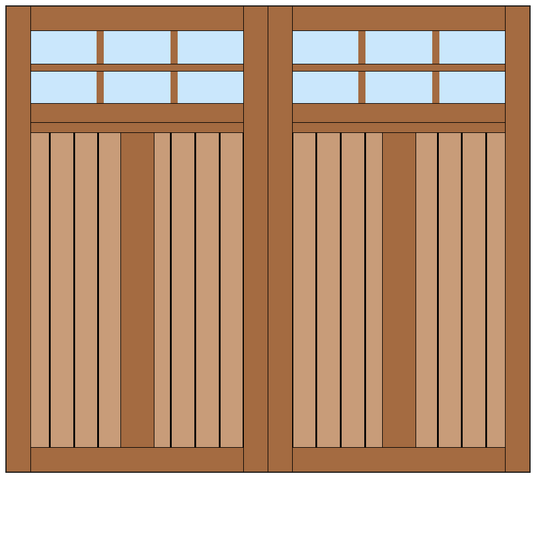 Our classic wooden garage door models can be built in a traditional Overhead configuration consisting of multiple horizontal panels that roll up on tracks to the ceiling. Our doors work with most standard garage door openers and motors. Select your favorite design to begin customizing your new doors.